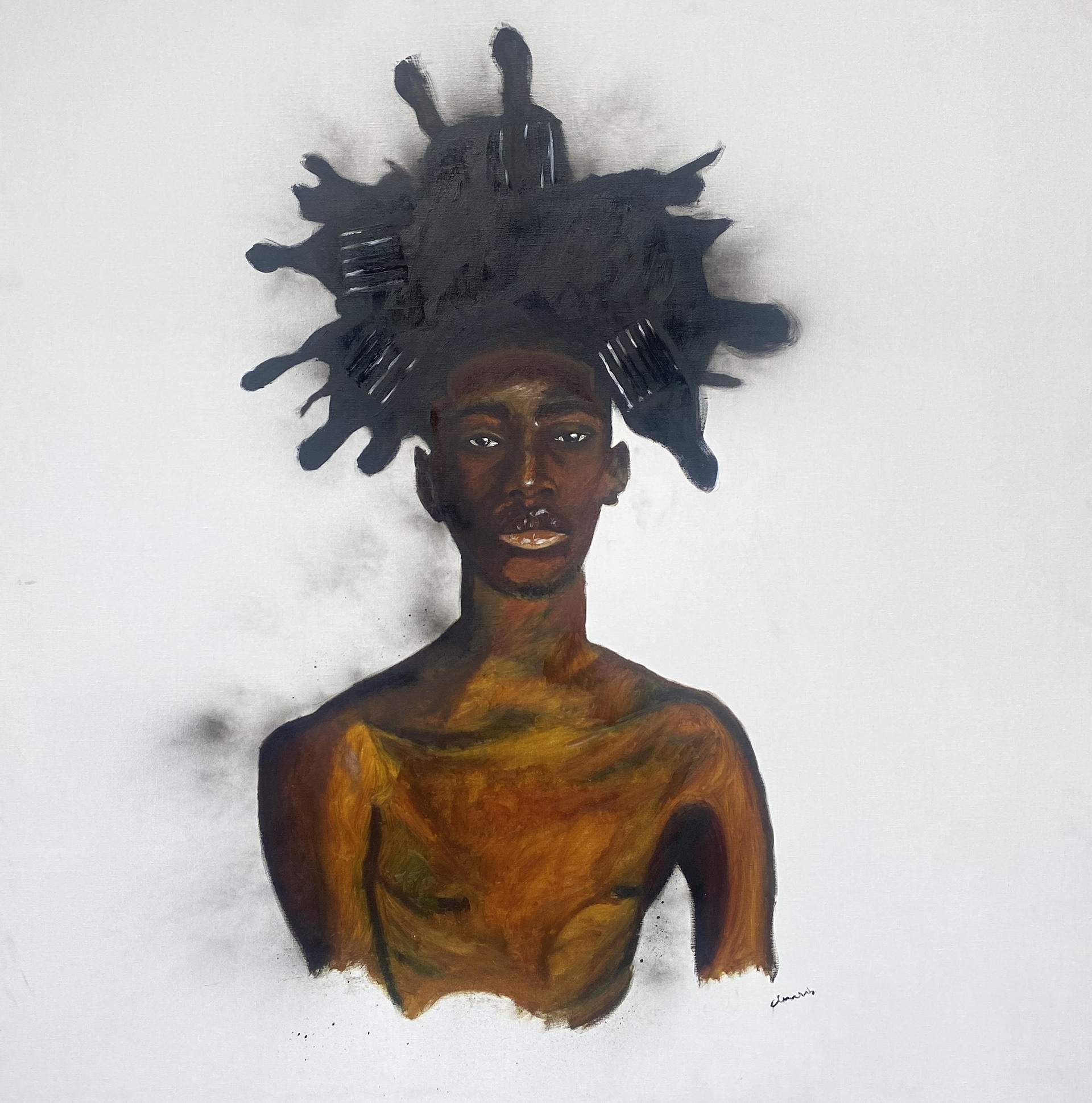 L'expression de la complexité capillaire de l'homme noir 160 cm x 140 cm Oil on canvas =